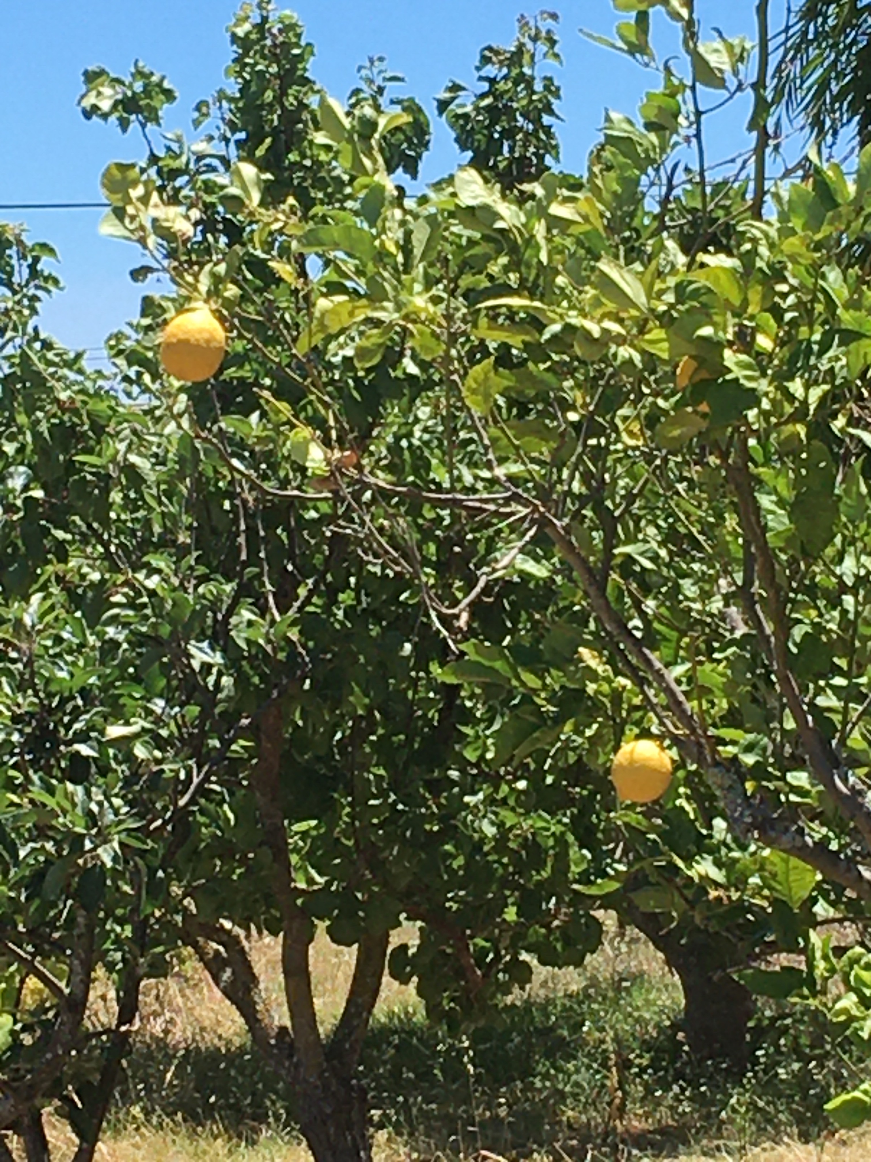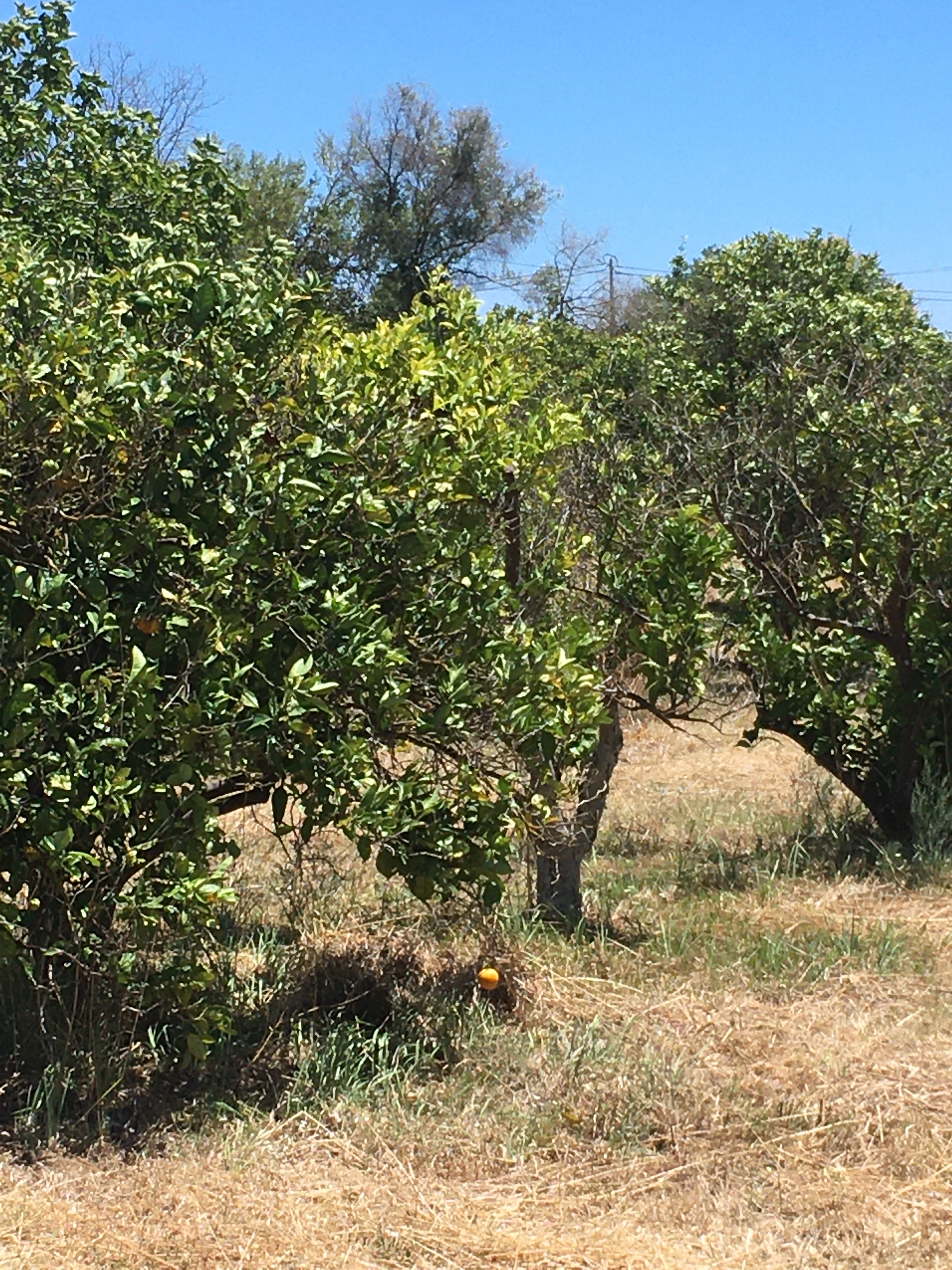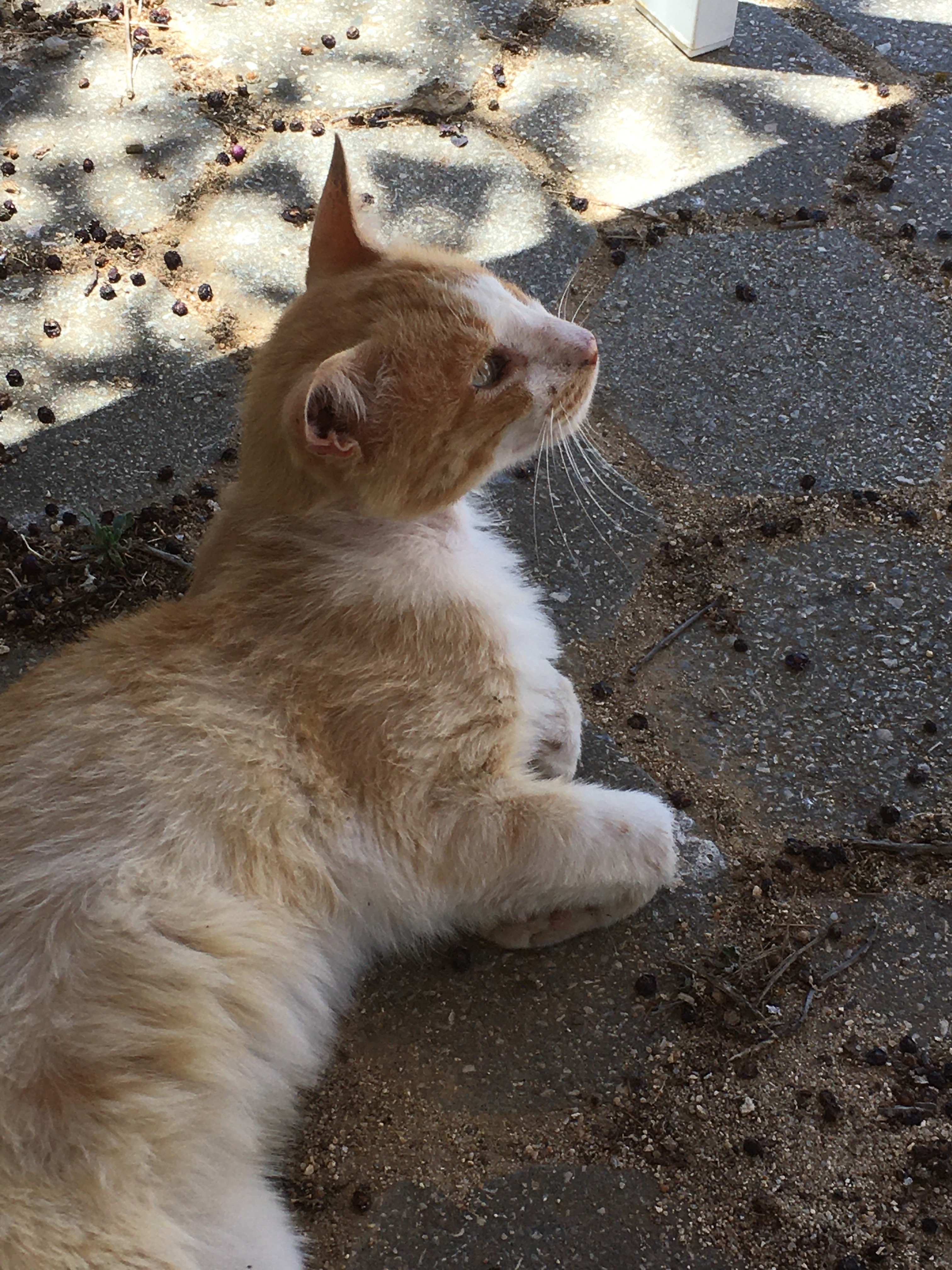 Jokunen viikko sitten kävimme tuttujen kanssa maatilalla. Tila on tällä hetkellä ihan hoitamaton, koska vanha isäntä on kuollut eivätkä lapset ehdi tilaa hoitamaan. Surullisen näköistä, ryteikköä ja roskaa, vaikka luonto parhaansa yrittää pitääkseen hengissä viiniköynnökset, banaanipuskat, persikat, sitruunapuut, appelsiinipuut, ruusut, (joista yksi on nyt meidän terassilla kasvattamassa itselleen juuria), ja vaikka mitä siellä olikin. Sinne on palkattu tilaa hoitamaan joku, joka ei ollut paikalla, joten kovin hyvästä hoidosta ei taida olla kyse. ☹️ Toki hän varmaan on viljelyksiä kastellut, koska muutoin kaikki olisi jo kuivunut. Pari kissaakin siellä pyöri, toinen oli tosi sosiaalinen ja hengaili koko ajan meidän kanssa, sekä jutteli kovasti.