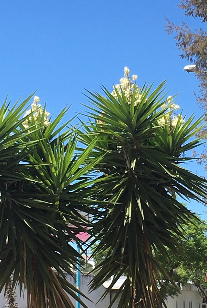 On multaa, on ruukkuja ja joitain muita kasvejakin on tulossa tällä viikolla, enkä jo huomenna, mutta palmuja en ole onnistunut vielä netistä löytämään. Nyt ei vielä ole kuin Pullojukka ja Jukka. Kun kävelee kaupungilla, niin erilaisilla terasseilla ja ihan kadullakin näkee ruukkuihin istutettuja palmuja. Joku päivä mä vielä harjoittelen ensin kotona sanomaan, että anteeksi, mistähän nuo palmut on ostettu. Sitten rohkaisen mieleni ja kysyn.