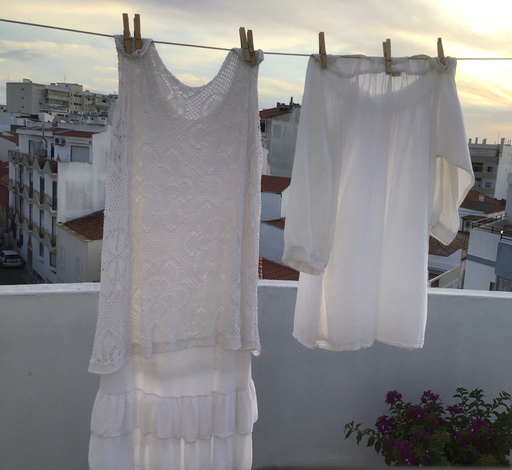 Ihan tavallista elämää on tänäänkin ollut. On siivottu, tiskattu, pesty pyykkiä ja oleiltu. Tänään oli pyykinpesussa myös vuorossa valkaisu auringossa, se toimii, kuten pesukone+auringonpaiste maskien desinfioinnissa. Ja täytyy myöntää, että nautin niin paljon tuosta pyykkien ripustelusta ulos kuivumaan, että usein valitsen jopa pyykkipoikien värit vaatteiden väreihin sopiviksi, tai asettelen niitä muuten värisymmetrisesti. Vaaleanpunaisia tai valkoisia pyykkipoikia meillä ei ole, joten silloin käytetään puisia. 😂