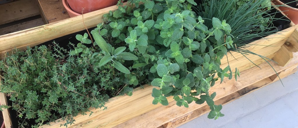 Lisäksi yrtit ovat toipuneet hyvin, vaikka melkein kaikki oli syöty ihan rangoiksi, ei lehden lehteä, vain pelkät varret olivat jäljellä.