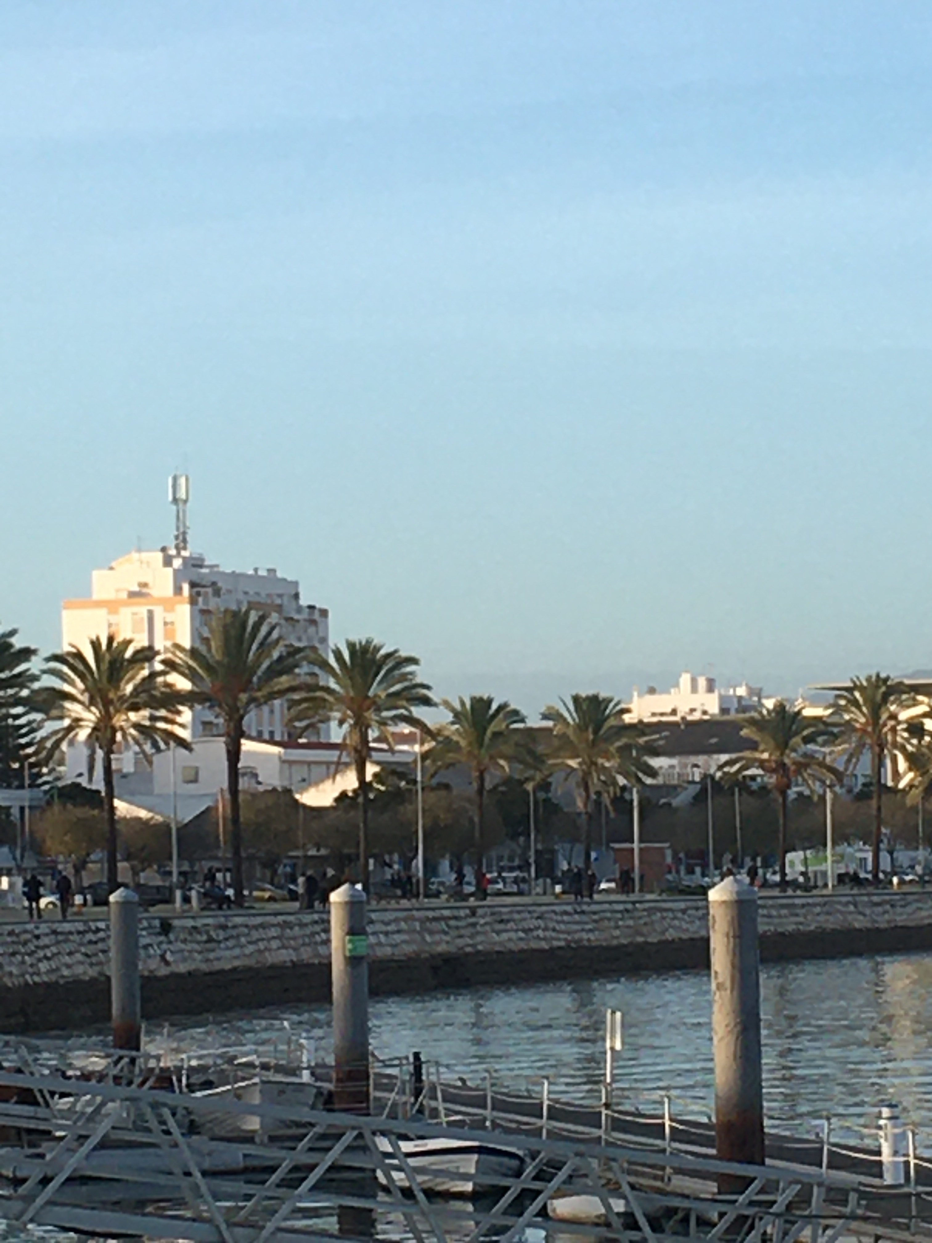 Eilen kävin ensimmäistä kertaa Clube Navalissa, paikallisen purjehdusseuran kahvilassa. Olen aina luullut, että nuo ovat sellaisia paikkoja, joihin tavallisen ihmisen tavallisella lompakolla varustettuna ei kannata mennä, mutta nyt erehdyin. Ihan edulliset hinnat, paikkoja mukavasti ulkona tuulelta suojassa sekä iltapäivän auringossa ja oli hauskaa katsella, kun purjehtijat ja jollailijat palailivat laituriin. Maisematkin aivan loistavat!