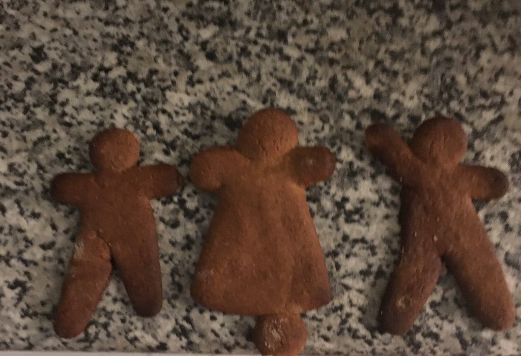 Siinä ovat Jalkapuoli, Fudismimmi ja Travolta.. Pikkuserkkuni oli FB:ssa keksinyt tuon Travoltan nimen. ❤️ Fudismimmin pallona on pipariukkelin pää, rajua toimintaa! Päättömän ukkelin jo söin.