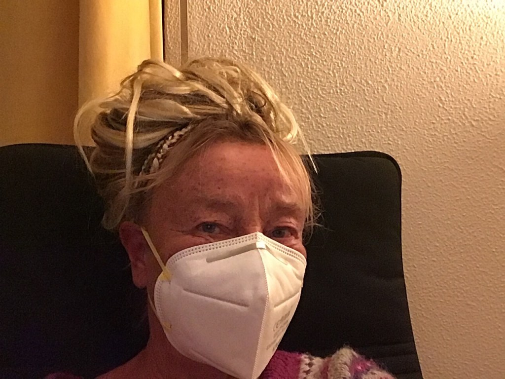 Tuosta reissusta opin, että jos pitää olla pitkään keinoilmastoinnissa sisätiloissa, kannattaa laittaa kevyempi maski. Onneksi mukanani oli myös toinen, puhdas kertakäyttömaski. Vaihdoin sen heti ulos päästyäni, ja istahdin vielä tyhjälle bussipysäkin penkille hengittämään hetkeksi ihan ilman maskia. Enkä pyörtynyt missään vaiheessa!