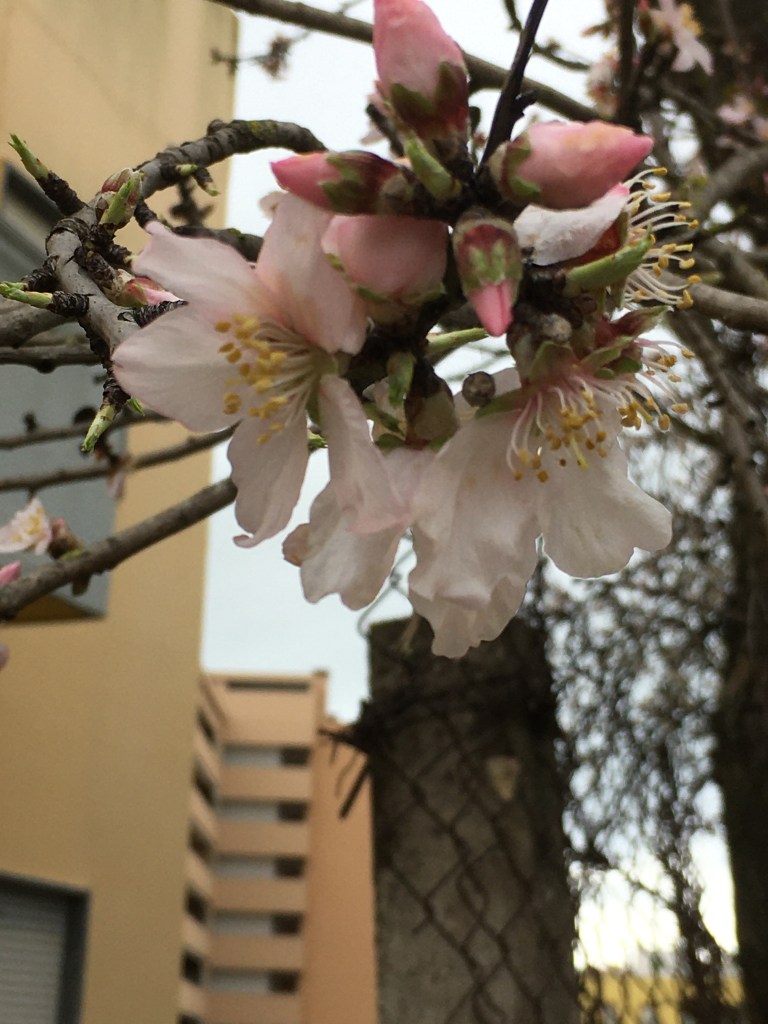 Positiivista eilisessä reissussa oli kuitenkin se, että näin ensimmäiset mantelipuun kukat. Ne tulevat aina keväällä ensimmäisinä. Eli vaikka kuinka sataa, tuulee ja on viileää, niin kyllä luonto tietää, kevät on tuloillaan.