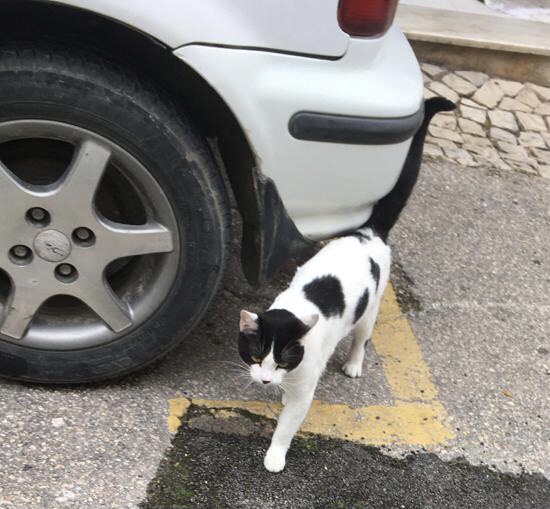 Lähellä meitä on autokorjaamo, tai ehkä jokin yleiskorjaamo, koska siellä saattaa ohi kävellessään nähdä erilaisia korjattavia laitteita ja vempaimia. Korjaamolla vanhempi pappa laittelee kuntoon rikki menneitä asioita seuranaan kiva mustavalkoinen kissa, joka saa kulkea vapaasti sisään ja ulos. Jouni on jo päässyt kissan kanssa sen verran tutuksi, että molemmat ummistelevat toisilleen silmiään, aluksi kissa vain tuijotti häntä suurilla silmillään. Silitysvaihetta ei vielä ole kokeiltu.