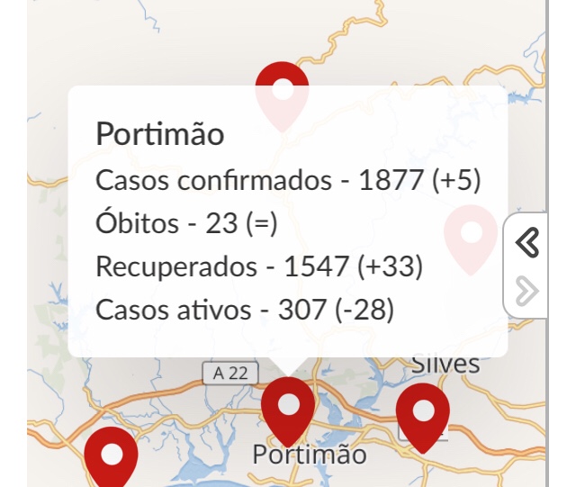 Tästä linkistä voi seurata joka päivä tilanteita ympäri Algarvea. Portimão kuuluu Faron piiriin.