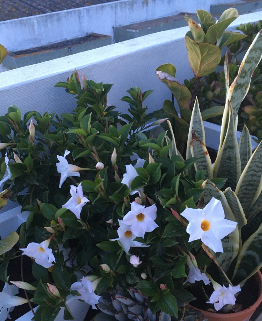 Lisäksi havaitsin, että monet lehtipuut ovat vielä ilman lehtiä. Eli minun ei myöskään tarvitse olla huolissani kahdesta bougainvillea-pensaasta, jotka muuttuivat talven aikana pelkiksi rangoiksi. Samanlaisia ne näyttävät olevan monessa paikassa. Ja nämä terassiversiotkin ovat jo aloittaneet uuden kasvun. Aina sitä oppii lisää.