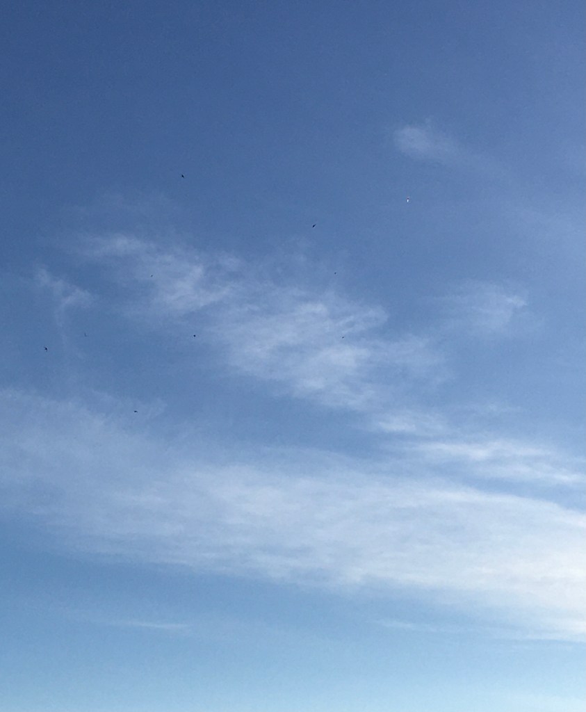 Haikaroiden, lokkien ja haukkojen seuraksi ovat ensimmäiset pääskysetkin jo saapuneet. Kesällä niitä toisin on vielä paljon enemmän. Hassua laittaa kuvaa muutamasta pääskystä, kun ne ovat niin vikkeliä ja pieniä, ettei puhelimen kameralla otetusta kuvasta mitään erota. Jos oikein suurentaa, saattaa nähdä muutaman mustia pisteitä taivaalla, joten pitää vain uskoa, että pääskysiä ne ovat.