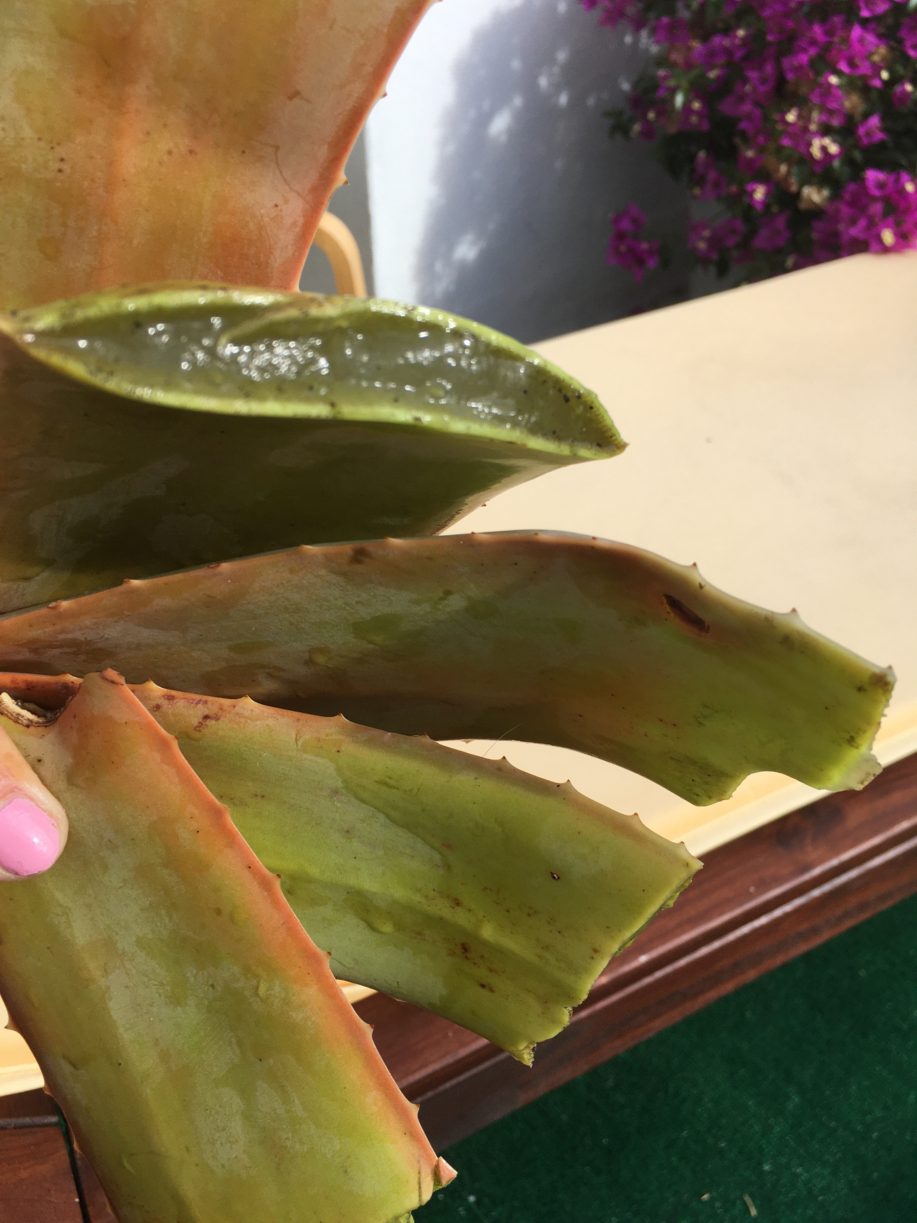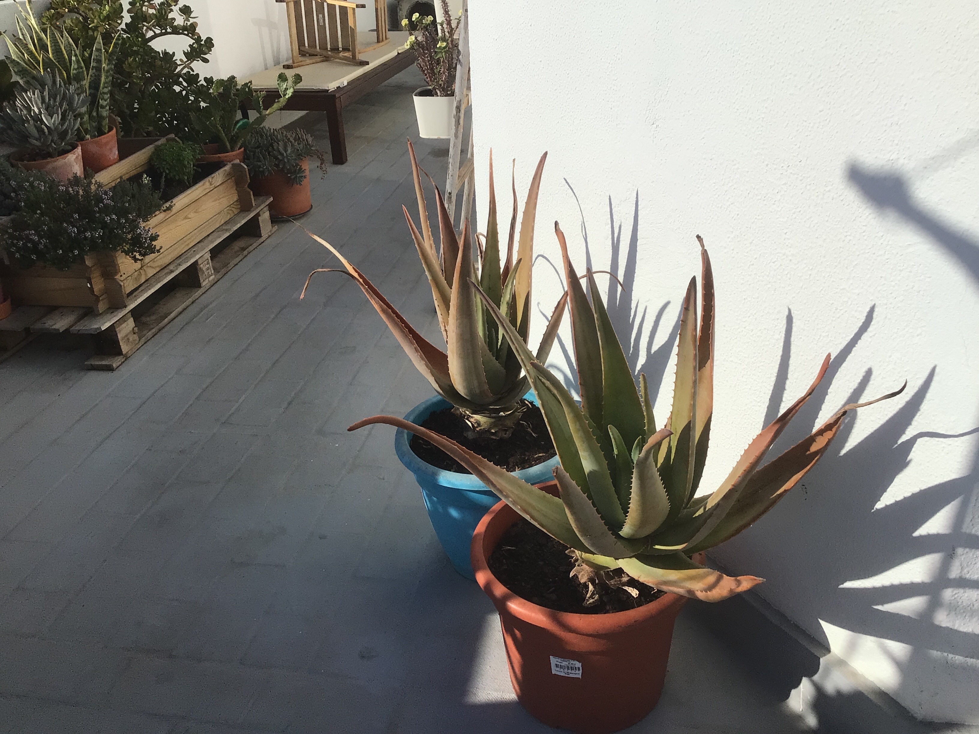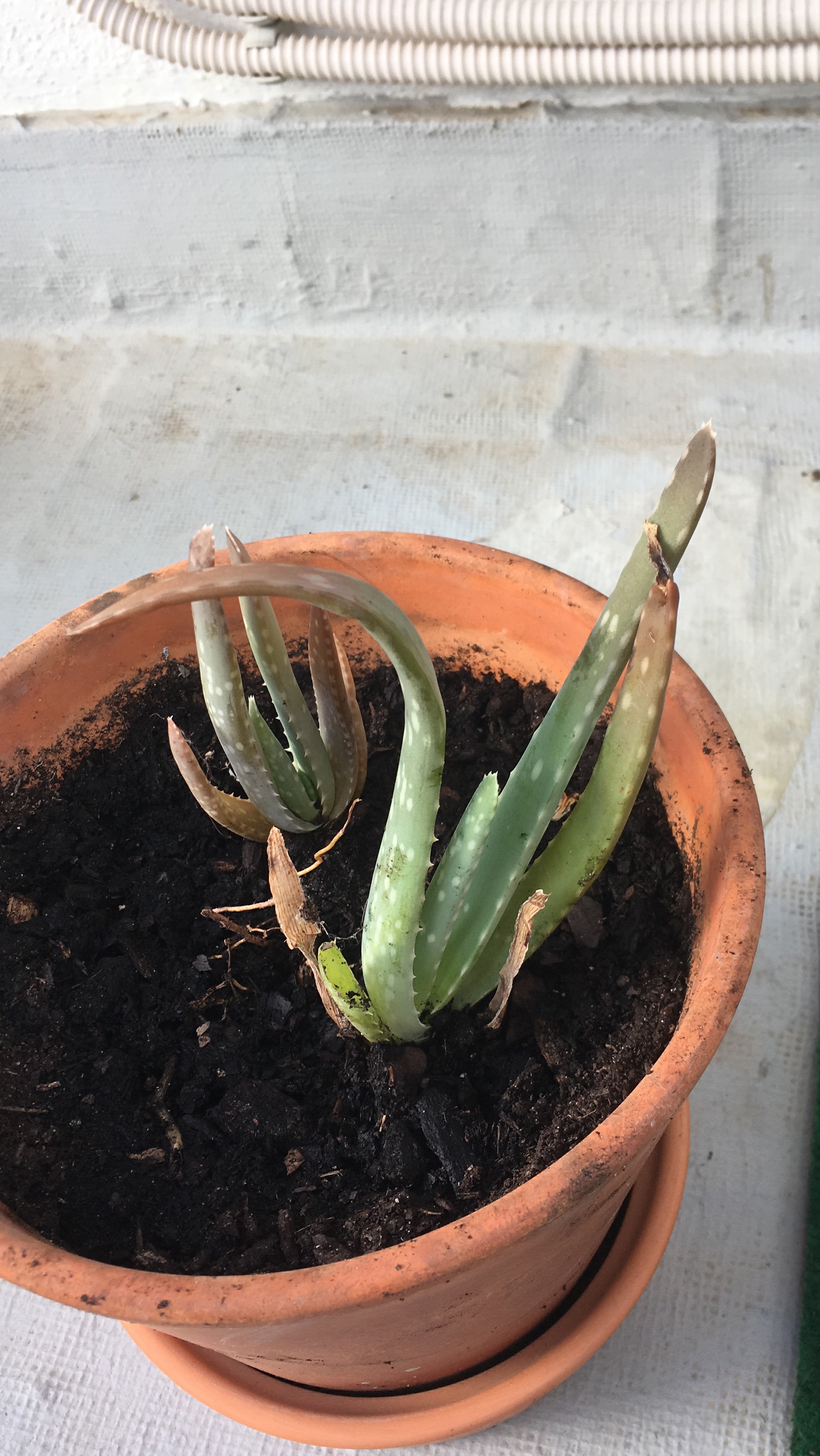 Kadun roskisten vierestä haetut Aloe Verat saivat uutta multaa, ja oli syytäkin. Nyt ne pysyvät pystyssä ihan omin neuvoin, eikä tarvitse tukea seinään. Lisäksi juurelta löytyi kaksi pientä tainta, jotka saivat oman ruukun. Lehtien karsinnasta jäi monta puoliksi, mutta vain puoliksi, kuivunutta lehteä, jotka kyllä kestävät pitkään. Joten nyt minulla on mitä mahtavinta ihonhoitoainetta.