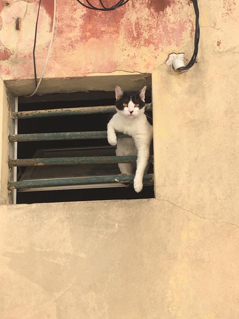 Meidän terassillemme kuului eräänä päivänä aivan outoa melua, laulua, naurua ja huutoa. Aluksi luulin, että kadun toisella puolella olevassa herätyskokouslukaalissa oli jotkut riemuhippalot, mutta kun lähdin kaupungille, huomasin, että ääni tulee meidän rapustamme, toisesta kerroksesta. Videoin portaikkoa kävellessäni alas, tuosta voitte kuunnella, miltä kuulosti… läpsytys tulee minun flip-flopeistani. Öisin täällä on onneksi ihan rauhallista.