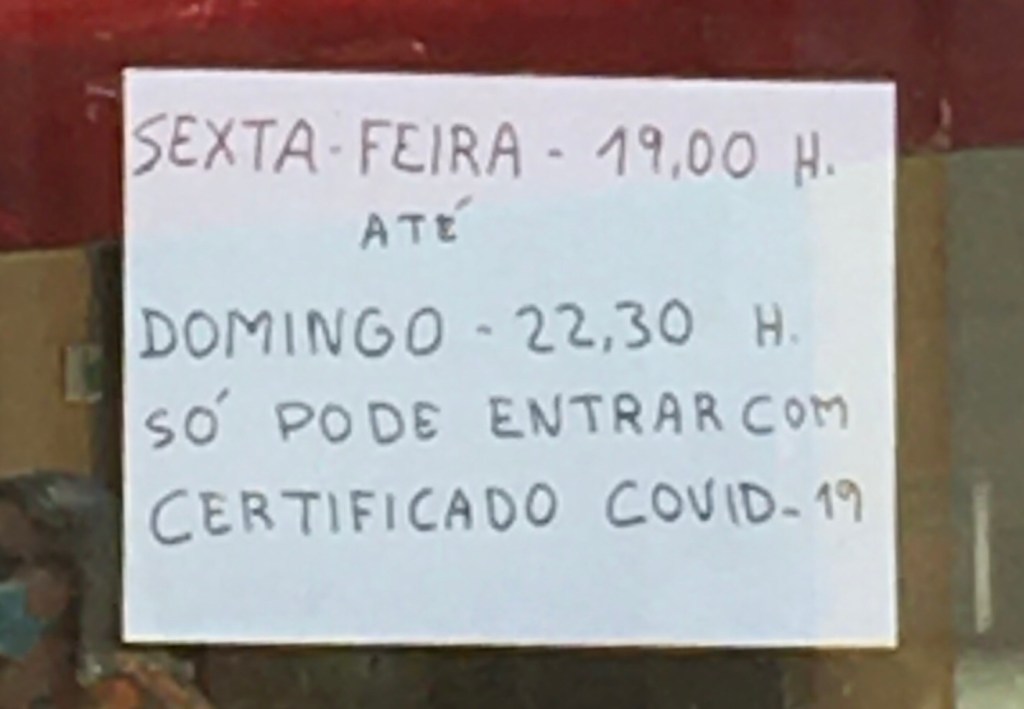 Itselläni on hienoinen ongelma, koska kyseistä todistusta ei voi saada muuhun kuin portugalilaiseen puhelinnumeroon, ja se liittymä on Jounin nimissä, joten minun terveyskeskusnumerollani ei kyseistä numeroa hyväksytä. Kannan mukanani rokotuspaikasta saatua pientä pahvista korttia, josta kyllä käy ilmi, että olen saanut molemmat rokotteet. Täytyy nyt vielä yrittää saada edes paperinen tuloste tietokoneelta jotenkin ulos, vaikka sähköinen versio puhelimessa olisikin helpompi. Kysyin tuosta pahvikortista meidän lähikuppilan pitäjältä, että kelpaako se, ja hän vastasi, että kelpaa. Ei kuitenkaan voi olla varma, koska siellä me olemme tuttuja, eikä meiltä yleensä kysytä yhtään mitään.
