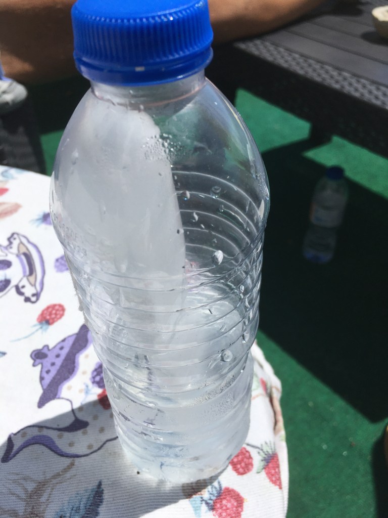 Helteellä aika tavalla laiskottaa. Ei oikein mitään saa aikaiseksi. Sen verran kuitenkin ryhdistäydyimme, että jääkaappi ja pakastelokero tuli sulatettua. Ja hiukan liian kylmälle se taisi tulla säädettyä sulatuksen jälkeen, kun puolen litran vesipullosta puolet oli jäätynyt jääklöntiksi. Nyt asia on korjattu.