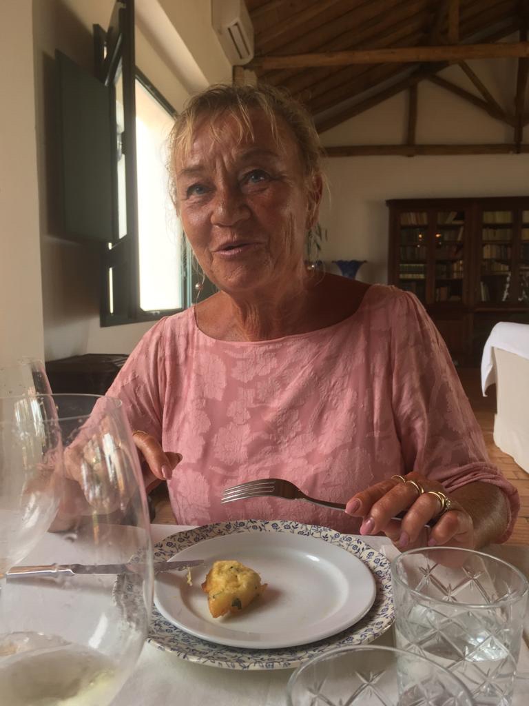 Seuraavaksi tarjoiltiin lämpimiä turskapaistoksia, ja olin luvannut, että ainakin maistan kaikkea, mitä eteeni kannetaan, siis pitihän niitäkin maistaa, vaikken alkuunkaan ole turskan ystävä. Mutta nämäpä paistokset olivatkin niin hyviä, että söin niitä kaksi! Ja turskan kanssa tarjoiltiin tilkka roseviiniä, parempaa en ole ikinä maistanut.