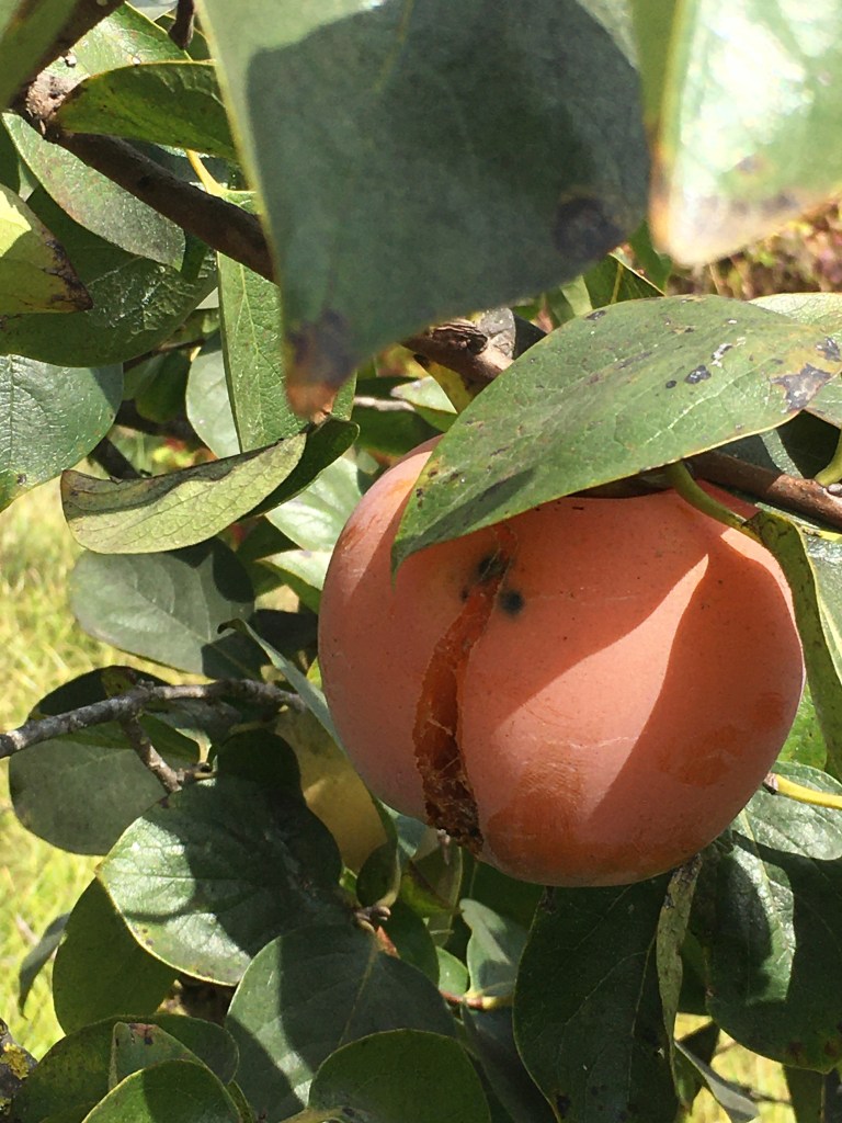 Tämä yksilö on jo mennyt ylikypsäksi ja haljennut, sitä ei voi enää käyttää. Jotkut hyönteiset ovat ryömineen aterioimaan halkeamasta.
