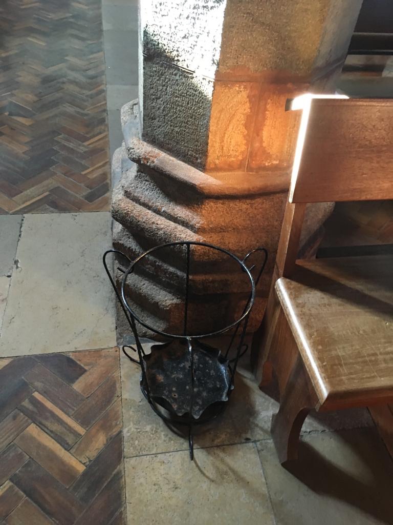 Pistäydyimme jopa yhdessä kirkossa sisällä. Koska Monchique on korkealla, siellä sataa paljon enemmän kuin meillä, joten silmään pisti kirkon penkkien päissä siellä täällä sijaitsevat sateenvarjotelineet.