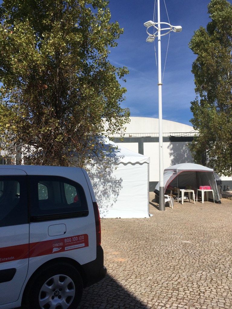 Portimaon museon viereen ulos oli pystytetty kaksi telttaa, joissa dermatologi kävi tutkimassa kaikki asiakkaat. Kun on lämmintä, ei haittaa odottaa sängyssä alusvaatteisillaan, että edellinen asiakas viereisessä teltassa on tutkittu. Ja tietenkin jokaisen asiakkaan välillä vapaaehtoistyöntekijät, jotka olivat niin iloisia ja ystävällisiä, kävivät desinfioimassa tutkimuspöydät. Kyllä palvelu pelaa!