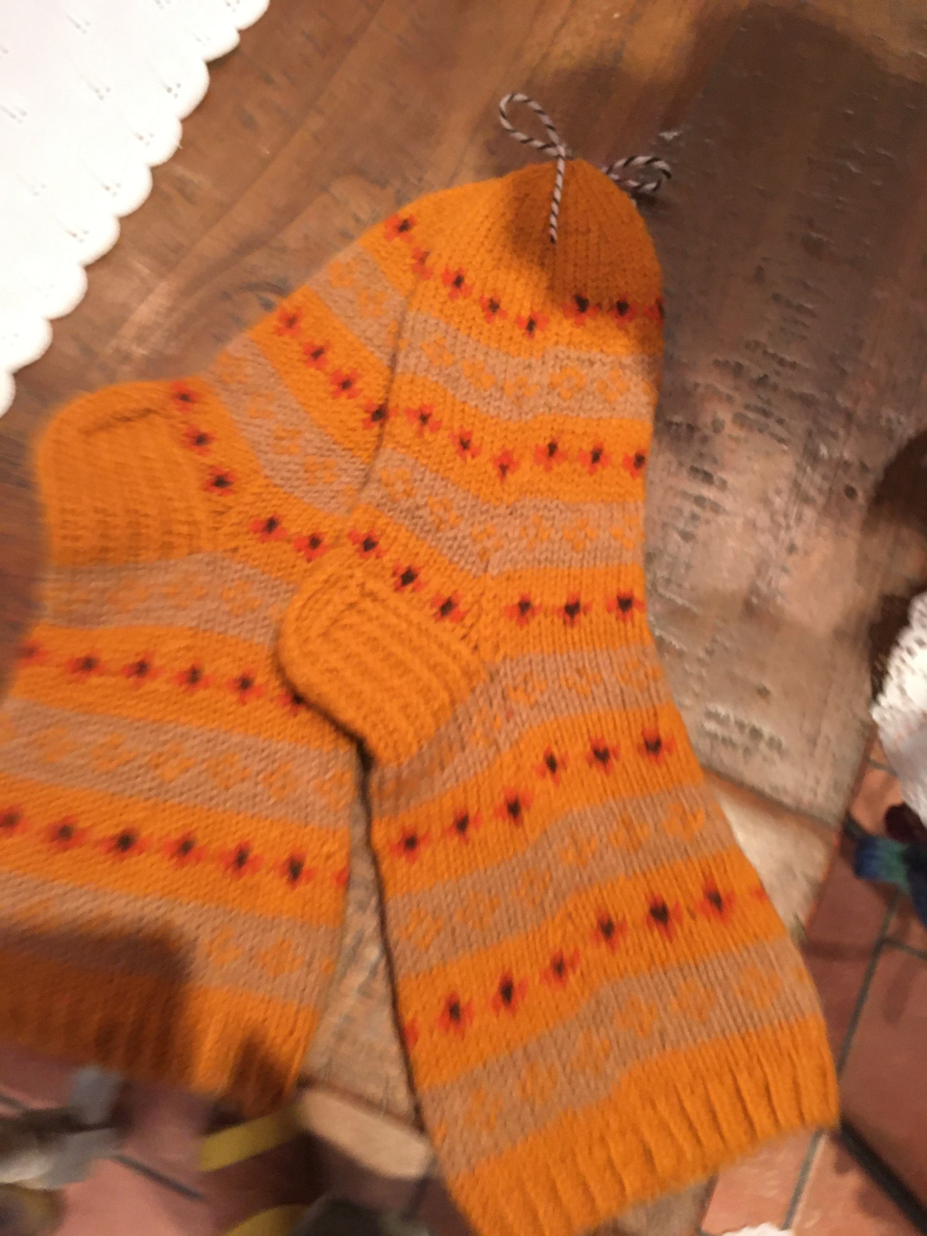 Villasukkien määrää en ole edes laskenut, koska niitä ei voi neuloa liikaa. Kaikki, jotka minut tuntevat, tietävät, että joka ikinen joulu annan lahjaksi villasukkia. Näillä viileillä kaakelilattioilla villasukat vielä ovat ihan ehdoton pakko. Mahdollisesti niiden päälle vielä huovutetut tossut.