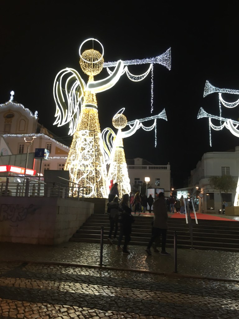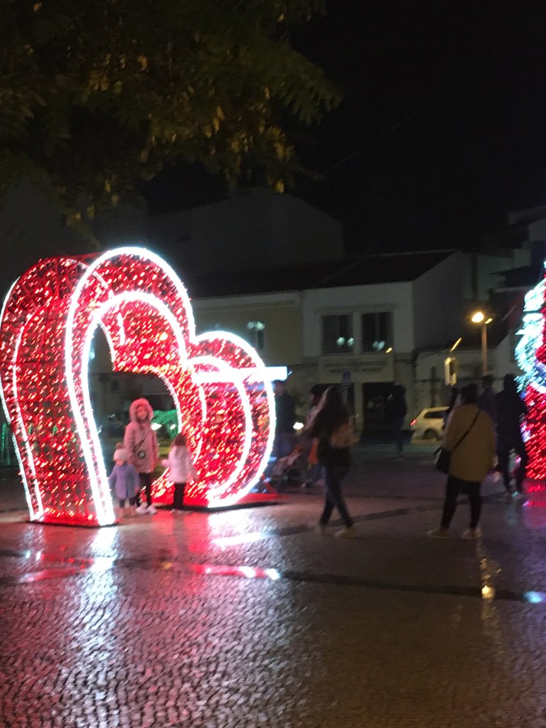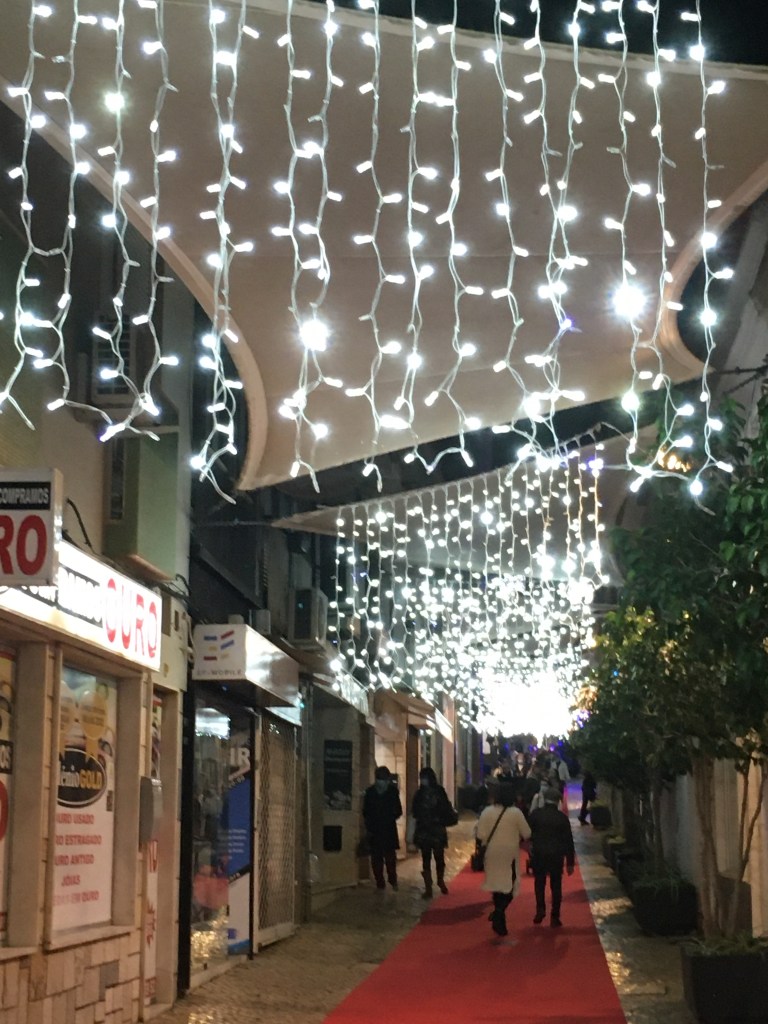 Kävelykadulla, Rua da Comercialla on punainen matto kaikkien valojen lisäksi, se on kaunis. Ja kun täällä ei sada lunta taikka kadut jäädy, niin on mahdollista laittaa kävelijöille joulumatto alle.