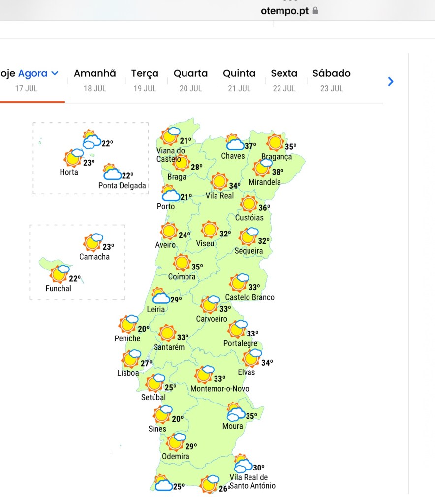 Lämmintä toki on, mutta Algarven alue on tainnut viime viikolla olla viilein koko Portugalissa. Lämmöt huitelivat kolmessakympissä, kun pohjoisempana on menneen viikon aikana mitattu jo yli neljänkymmenenkin lukemia. Tänään on jo viileämpää joka puolella.