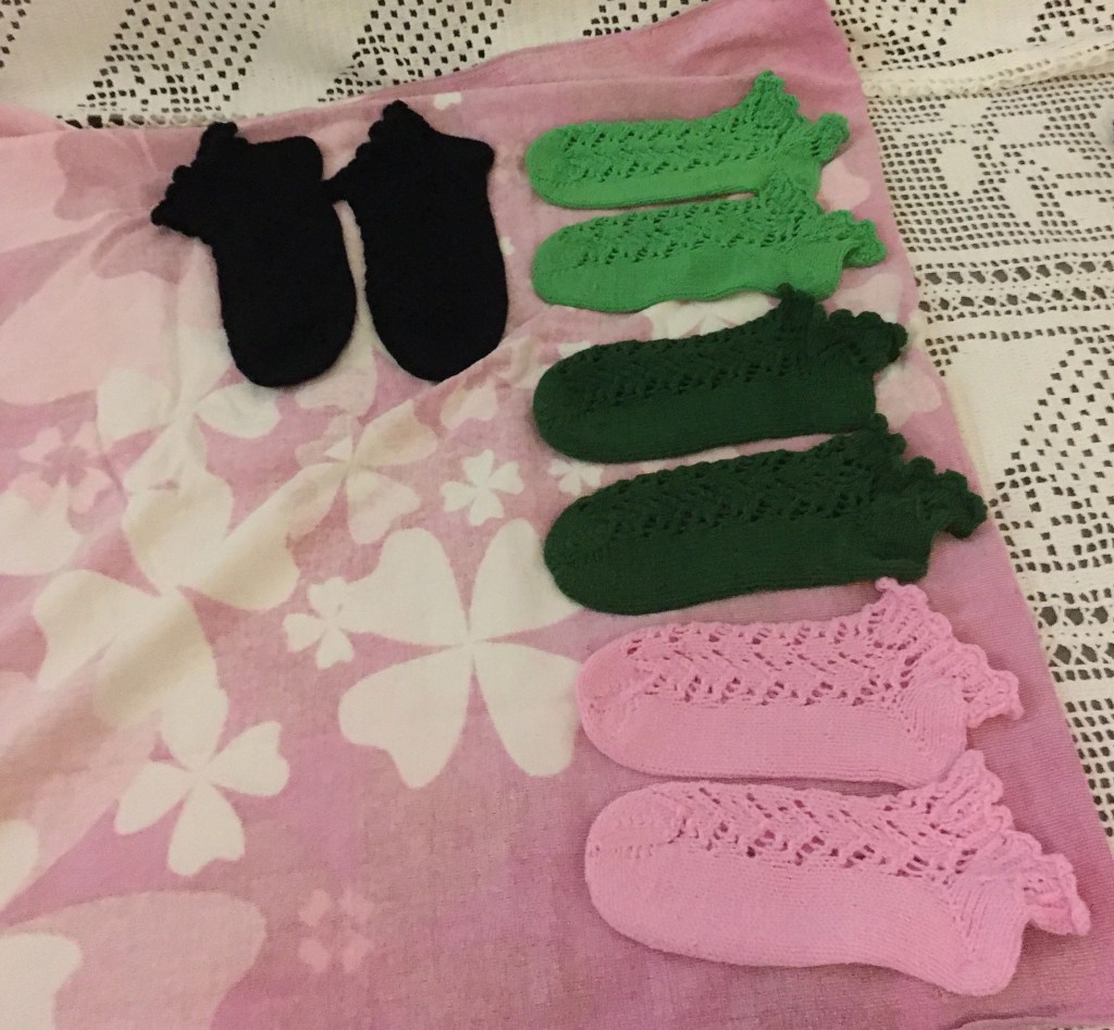 On ihan vanhat ajat Torppiksen koulussa tulleet mieleen, kun eräs suomalainen täällä on tilannut minulta tuliaisiksi Suomeen puuvillaisia pieniä pitsisukkia Noitahan aikoinaan tein työparilleni aika paljon. Puuvilla- ja puuvillasekoitelankoja täältä saa oikein hyvin. Ja mukavaa on ollut pitkästä aikaa tehdä noita pikkusukkia.
