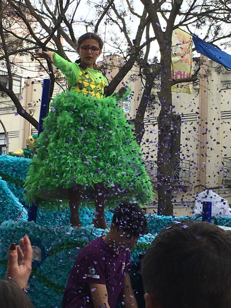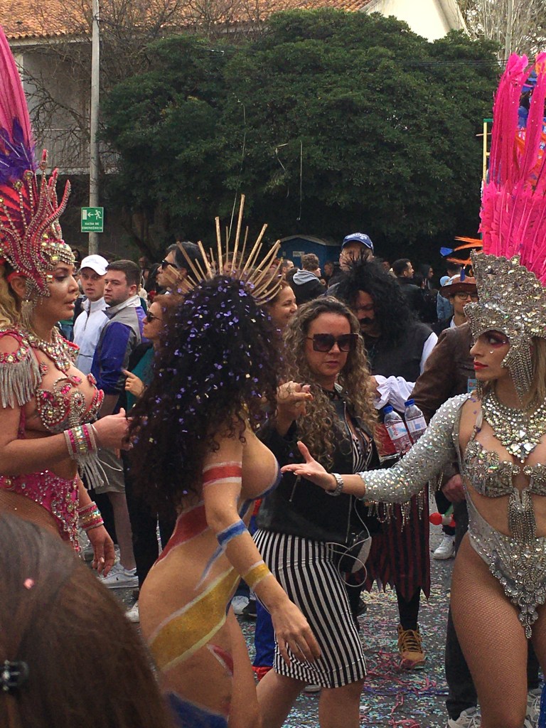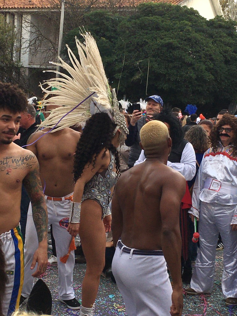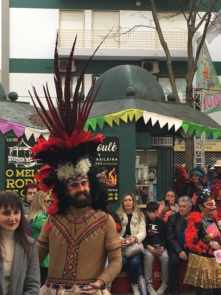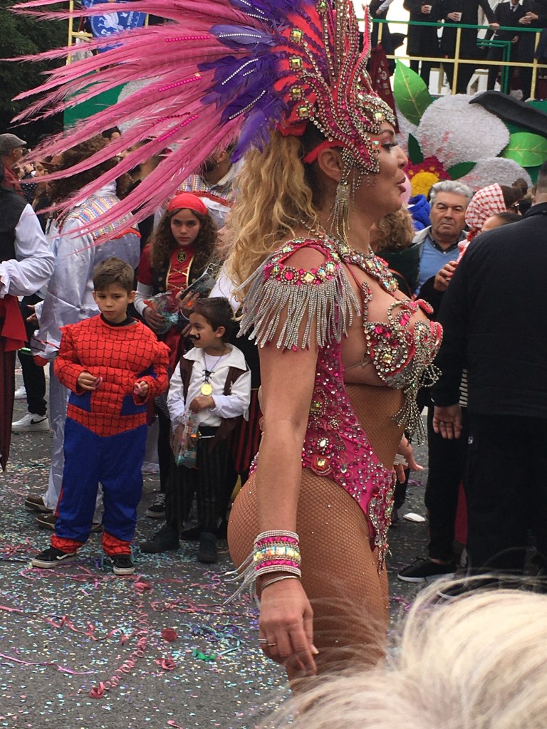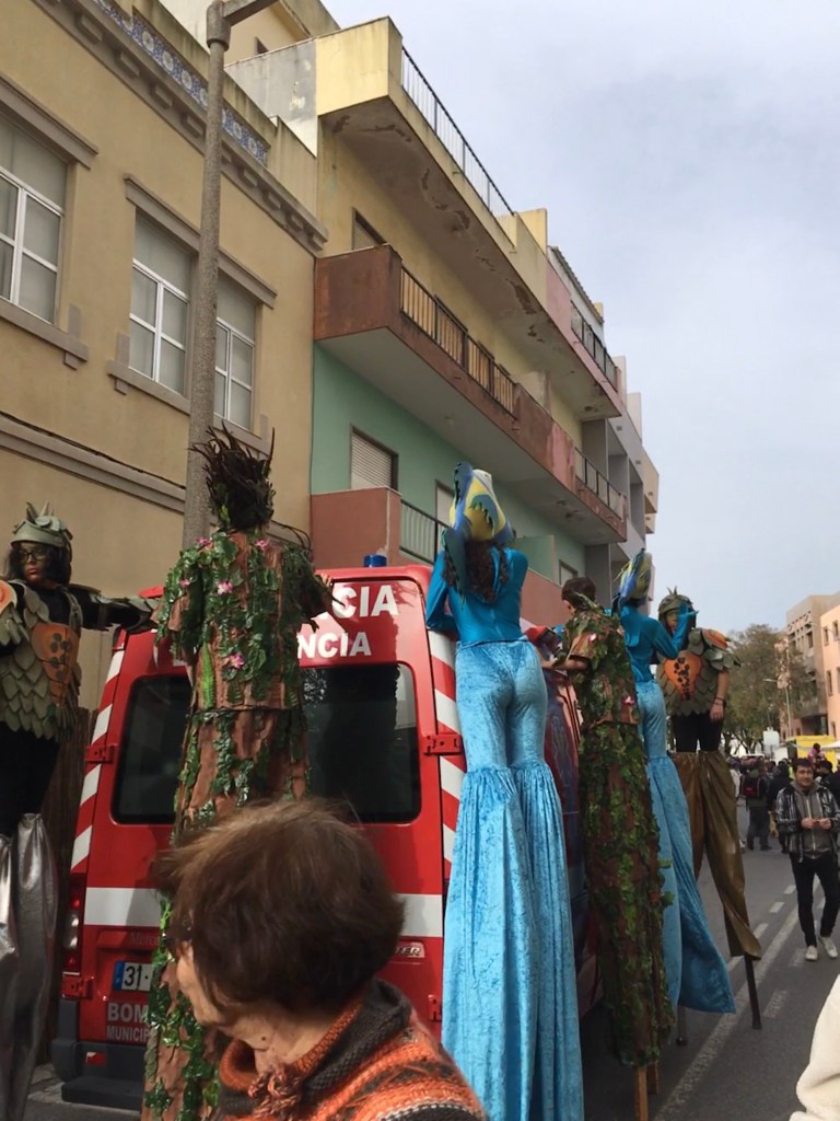 Olimme Louléssa, reilun tunnin junamatkan päässä kotoa. Monet olivat kehuneet nimenomaan Loulén karnevaaleja, joten pitihän ne nähdä. Sää oli harmaa, hiukan vettäkin ripsi jossain vaiheessa, mutta ei onneksi paljoa, ja jokusen lämmittävän säteen sai aurinkokin annettua pilvipeitteiden raosta.
