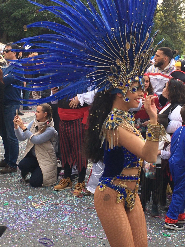 Oli vaikeaa löytää pöytää viidelle ihmiselle jostain kadun varrelta, vaikka edellisissä kuvissa niin tyhjältä näyttääkin. Lisäksi vaikutti myös siltä, että vain murto-osa kahviloista oli auki. Miksiköhän? Itse karnevaalin alkuun nimittäin oli vielä aikaa pari tuntia, ja jossain olisi voinut syödäkin jotain.