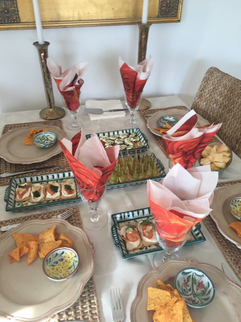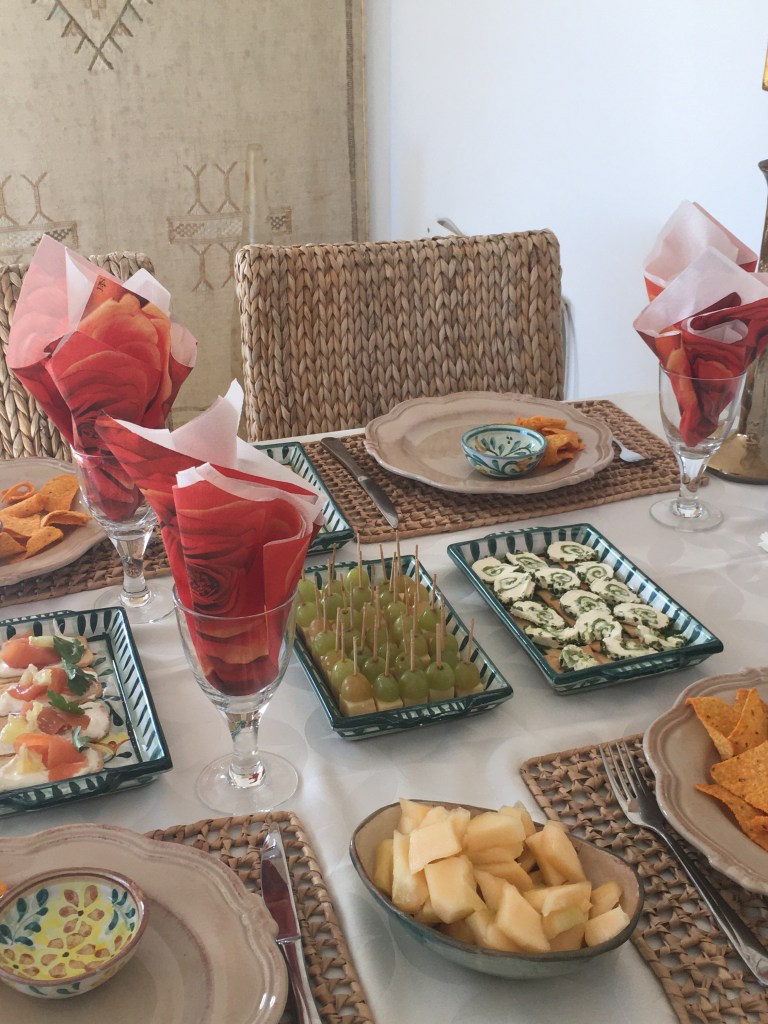 Viime viikonloppuna vietimme tapas-iltaa ystävien kanssa. Kaikki naposteltavat olivat mahdottoman hyviä, ja kattaus niin nättiä että… pari kuvaa siitä pöydästä.