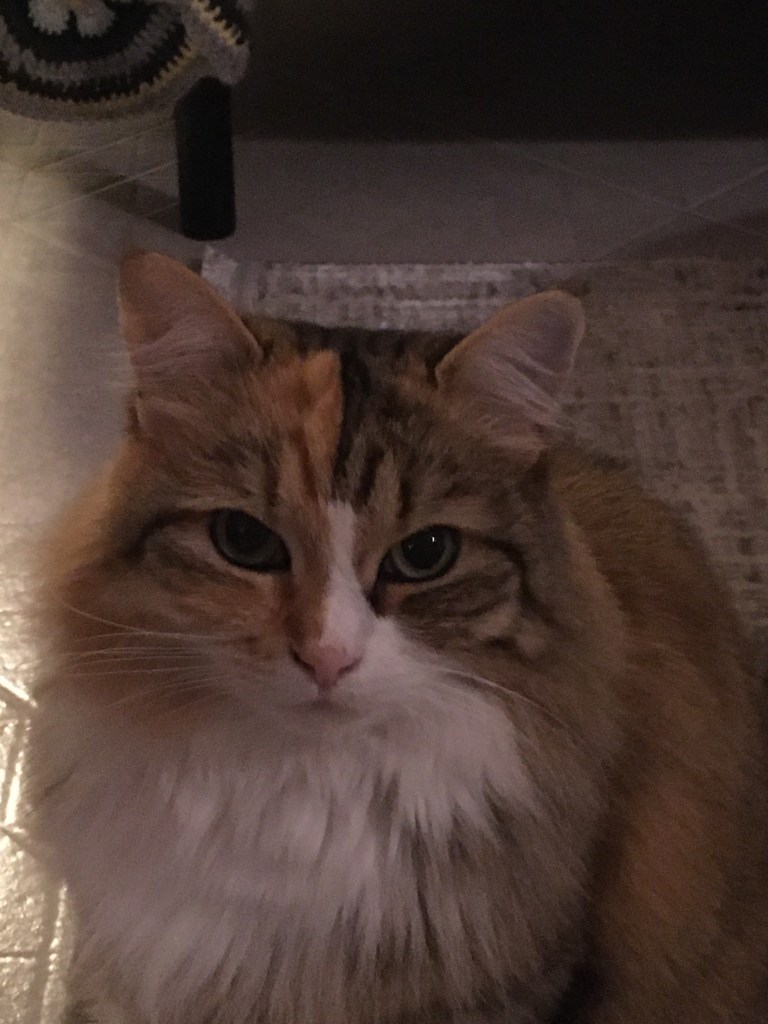 Vakava kissamme, tuijotuksen kohde olen minä.