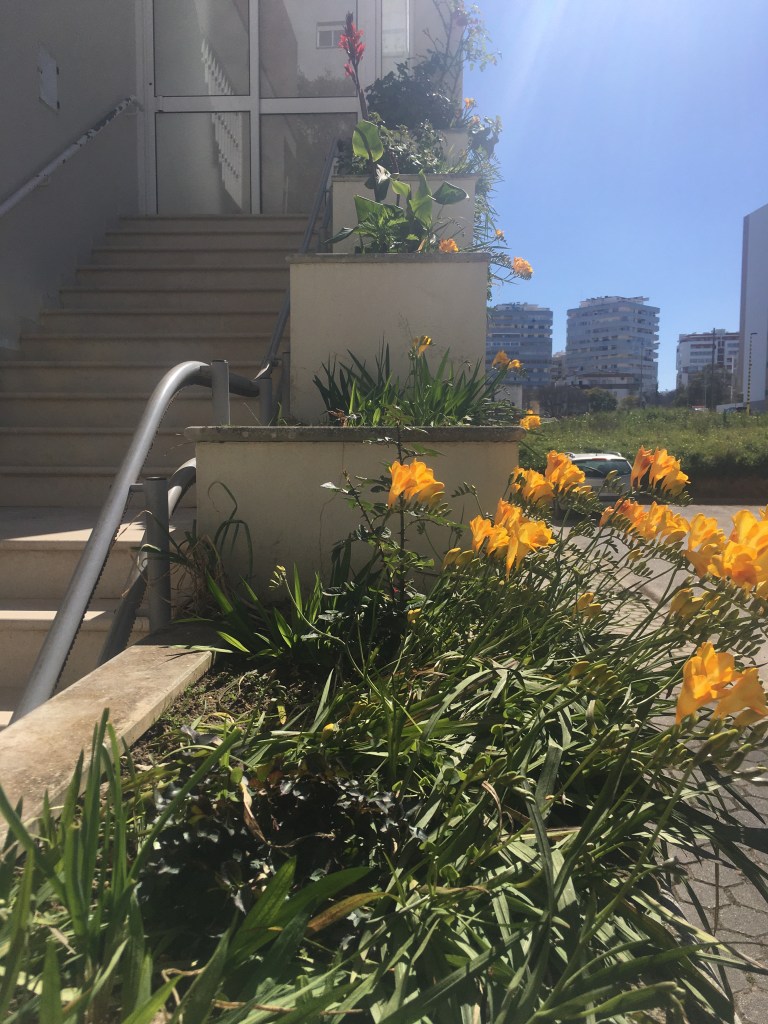 Kun kävelee kaupungilla, niin maisema on hyvin vihreää ja monet kukat ja muutamat puutkin ovat alkaneet jo kukkia. Aurinko lämmittää, mutta tuuli on ollut kovin kylmä.