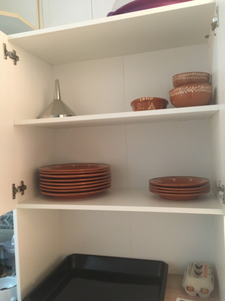 Eräs ystäväni lahjoitti minulle taannoin astioita, koska meillä niitä oli aika vähän ja hänellä taas paljon. Yritin hiukan laittaa stoppia tähän astioiden antamiseen, kun kaapit jo alkoivat olla ihan täynnä, mihin hän totesi, että teidän pitää hankkia uusi kaappi.