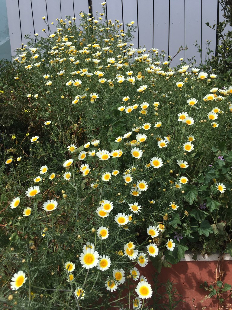 Nuo kuvissa olevat kukat ovat vallanneet istutetun kukkapenkin reunat käyttöönsä. Samanlaisia – ja paljon muitakin – kukkii tuolla vähän joka paikassa. Jopa meidän terassille oli viime vuonna tullut johonkin purnukkaan noita kuvan keltaisia kukkia.