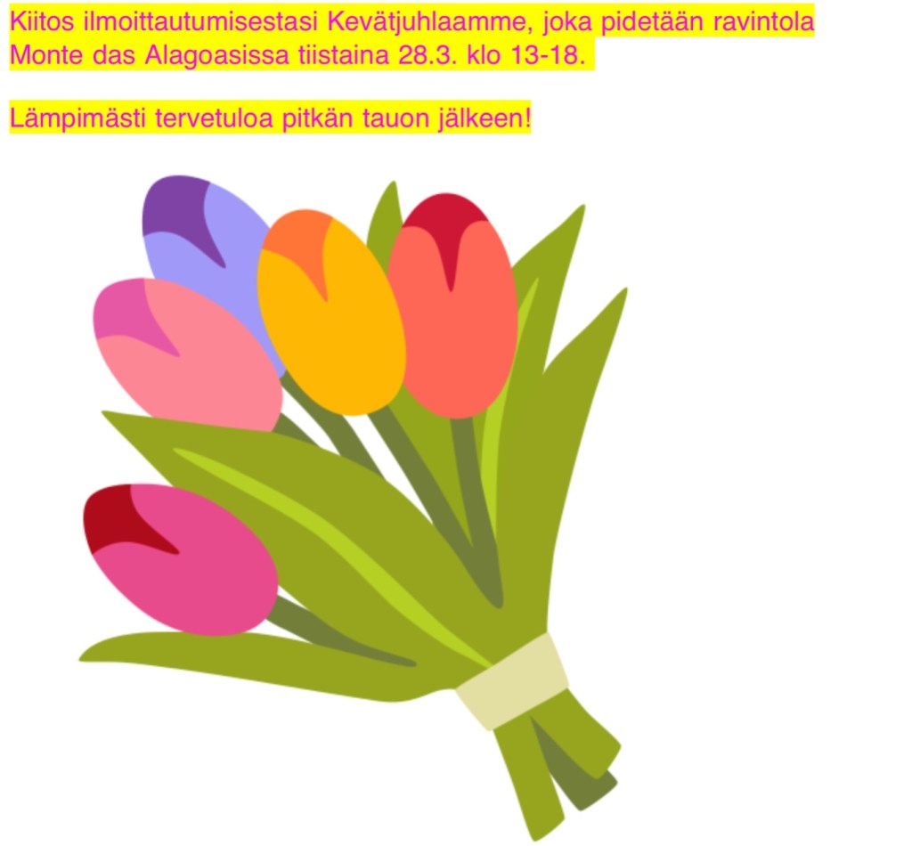 Algarven Suomi-seuran kevätjuhla oli elämys. En olekaan aiemmin ollut kevätjuhlassa, koska saavuimme tänne ensimmäisenä pandemiakesänä, eikä silloin tietenkään ollut mitään tapahtumia.