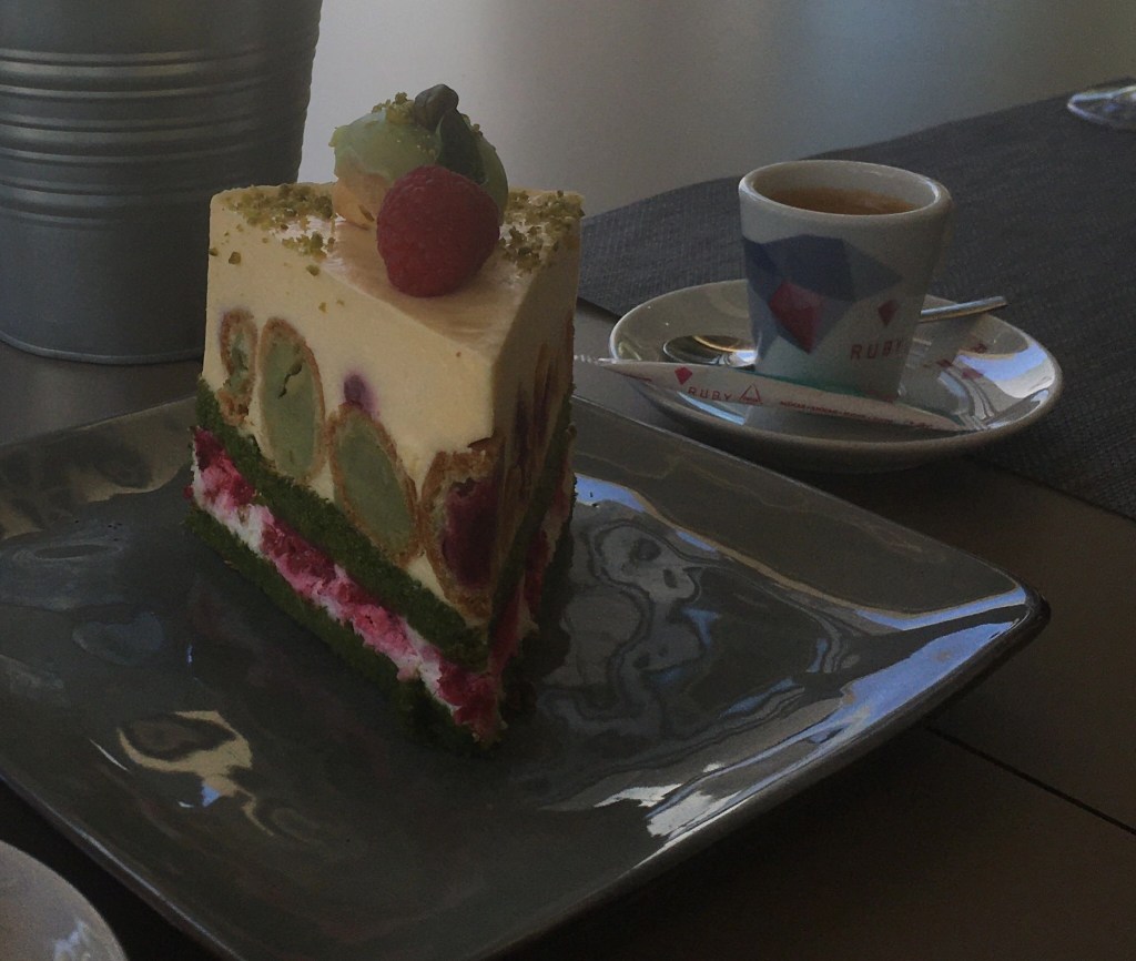 Lounasruokailimme Café Sweet&Salt, Portimãossa, paikka on kuuluisa siitä, että annokset ovat valtavia, kakkupalat myös, joten tyydyimme vain ottamaan croisantit ja jakamaan jälkiruokakakun.