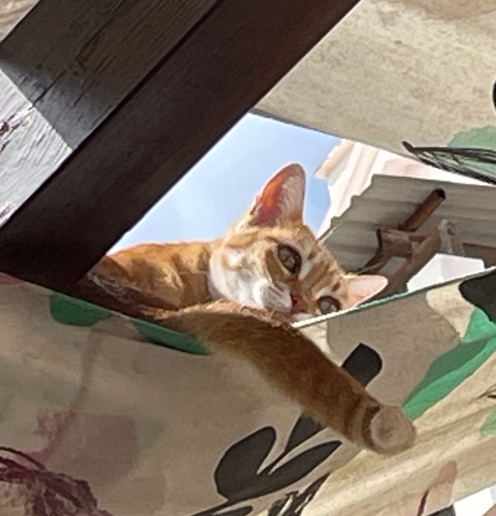 Jounin tytär miehensä kanssa on ollut meillä viikon. Tänään he suuntasivat vuokra-autolla Espanjan Malagaan, missä on sukulaisten hääjuhlat. Minä jäin hoitamaan kissaa, koska en ollenkaan tunne noita sukulaisia.