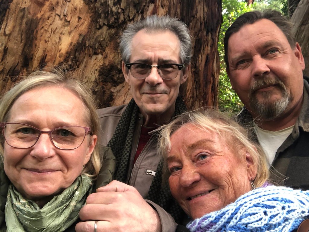 Otimme yhteiskuvan valtavien puunrunkojen lomassa. Tuoksukin siellä näin kosteaan aikaan on aivan mieletön. Tuossa kuvanottopaikassa tuoksui voimakkaasti joku ihana pihkainen aromi.