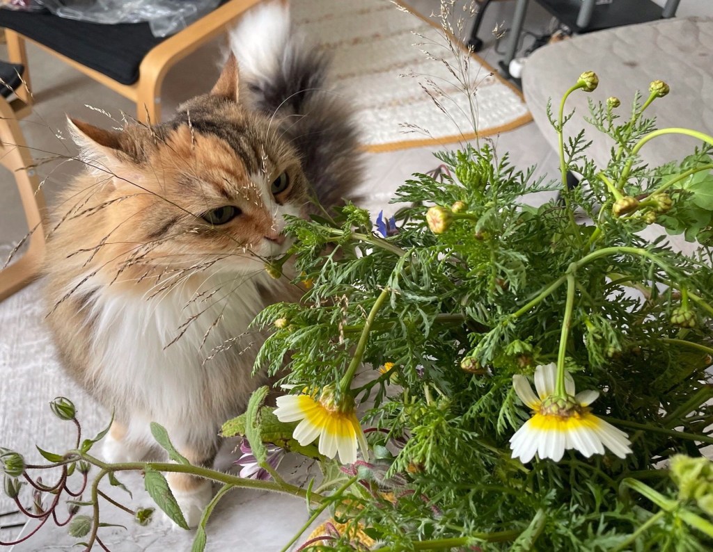 Reitin varrella oli paljon niittymaisemaa ja katselin menomatkalla kaihoten kaikkia ihania kukkia. Tulomatkalla sitten poiminkin niitä kotiin ihan hyvän kimpun. Monami oli oikein iloinen, kun sai haistella ja vähän maistellakin niityn kukkia.