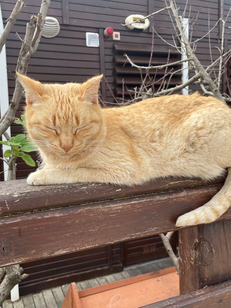 Vapaana kulkeville kissoille rakennetut talot ja muunkinlaiset asumukset ovat minusta hellyyttäviä. En ole ainakaan havainnut, että kissoista olisi ongelmia. Jotkut ystävälliset ihmiset ruokkivat niitä ja pitävät huolta, että heillä on juomavettä – varsinkin kesällä, nythän sitä löytyy ympäristöstäkin. Ja kyllähän joku on suunnitellut ja nikkaroinut kissoille asuintaloja, niitä olen nähnyt aika paljon monissa eri paikoissa, ei vain Portimãossa, ja niistä olen aiemminkin kertonut, mutta tämä alla oleva portti kissaa tai kissoja varten on kyllä myös suloinen. Siitä pääsee paksun muurin toiselle puolelle ihmisten pihaan reissuiltaan kotiin.