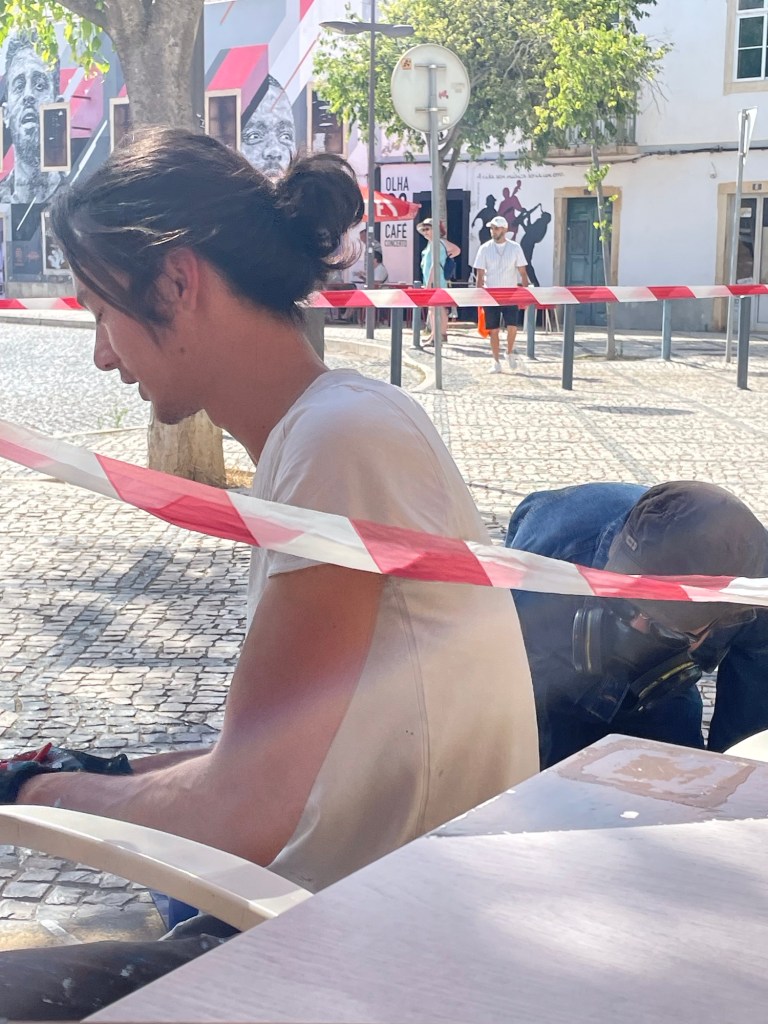 Vielä Portimãon paikallisia juttuja. Kissa on löytänyt itselleen hyvän paikan, hän ei taida pitää koirista.