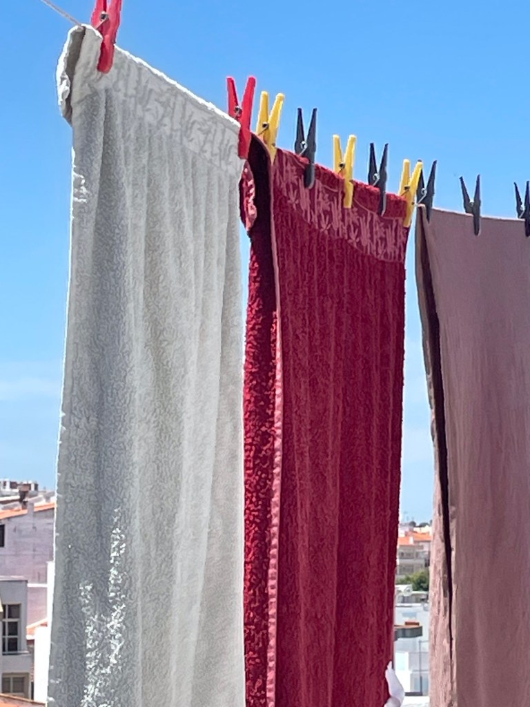 Tämä pariskunta asuu aivan uskomattomassa paikassa tässä ihan lähellä meitä. Kaksikerroksinen asunto ja päälle vielä kolmas kerros katolla, josta on aivan hulppeat näkymät. Niistä muutama seuraava kuva…