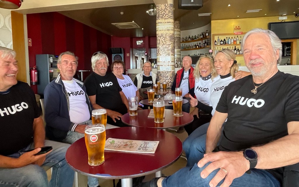Palvelu on koko aina ollut tätä tasoa, joten meidän priimusmoottorimme Susu ja Veka keksivät, että tehdään Hugolle yllätys. He painattivat T-paitoja, joissa luki rinnassa HUGO..