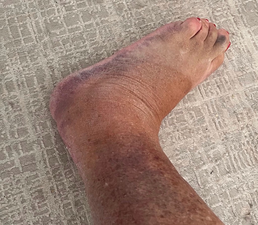 Näitä sateita ja kosteutta olen jo manannut moneen kertaan, ja vielä yksi juttu; kun porraskäytävän lattia on pesty, se kuivuu tosi hitaasti. Niinpä, kun erään kerran astuin ensin yhden, sitten toisen ja vielä kolmannenkin askelman alaspäin tasanteelle, en tajunnut, että se on aivan märkä. Liukastuin niin, että toinen jalkani jäi alleni portaaseen ja siitähän tulikin aika kipeä. Mitään ei revennyt tai mennyt poikki, onneksi, mutta aikamoiset mustelmat ja pieni rauhoituskuuri siitä seurasi. Nyt alkaa jo kävely sujua suht normaalisti, mutta odotan sitä aikaa, että pääsee taas reippaasti eteenpäin.