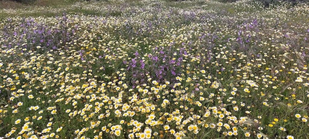 Menneen talven kaltaista en ole vielä kertaakaan kokenut. Tammikuusta lähtien on ollut sadetta miltei joka päivä, kovat ja kylmät tuulet, jopa myrskylukemiin asti. Eräs suomalainen, joka on viettänyt täällä 34 talvea sanoi myös, ettei ole ikinä aiemmin elänyt niin rankaa talvea täällä kuin tämä oli. Mutta Portugalin huhtikuukin on vihdoin päässyt vauhtiin. Villit niittykukat kasvavat tienvarsilla ja joka paikassa, missä niille vähänkin löytyy tilaa.