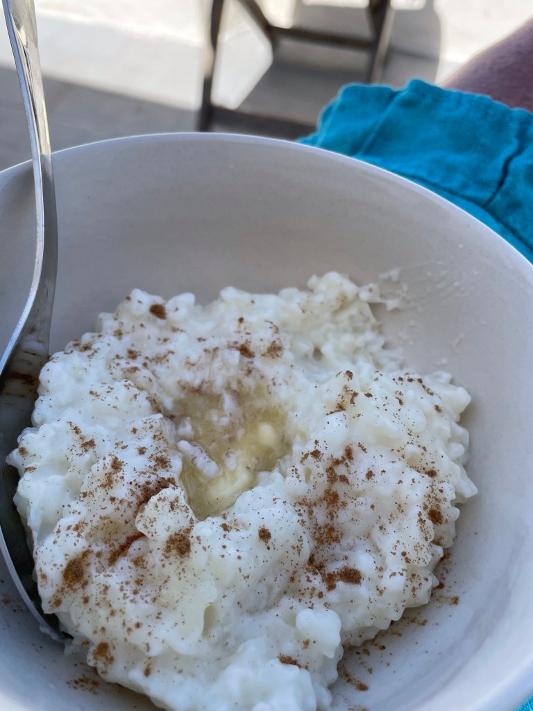 Kesäksi pois matkustavat myös reilusti antavat kaikkea tavaraa, jota on jäänyt yli. Asunnot vuokrataan kesän aikana turisteille, jotka maksavat (huikeaa) viikkovuokraa, talviasukkailla on kuukausivuokrat. Tänään meillä olikin ihan luksusaamiainen, kun saimme suomalaista puuroriisiä, kuka voi väittää, että riisipuuroa voisi syödä vain jouluna, se on niin hyvää, että sitä voi syödä milloin vain. Tietty vaakaa kannattaa aina välillä vilkaista.