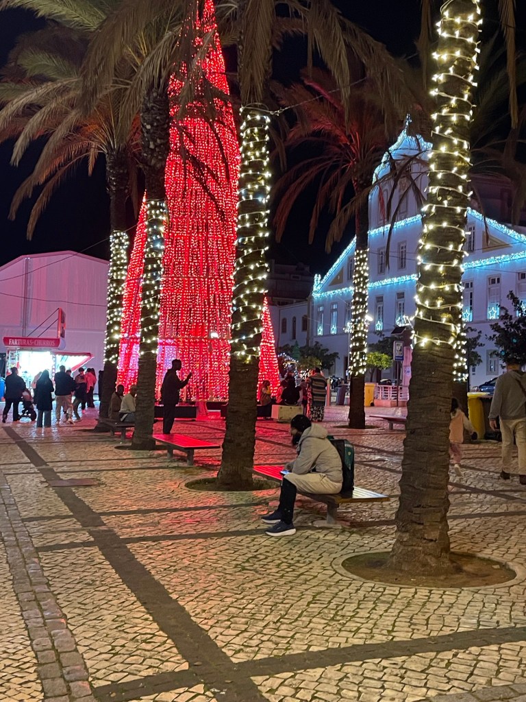 Joulukuun alkupuolella vedimme Jounin kanssa pienelle porukalle jouluvalokävelyn Portimãon keskustassa. Ikävä kyllä, lähdimme vähän liian aikaisin liikkeelle, kaikkia valoja ei vielä oltu sytytetty. Ruokailun jälkeen tämäkin tuli korjattua, valot jo paloivat, koska oli pimeää.
