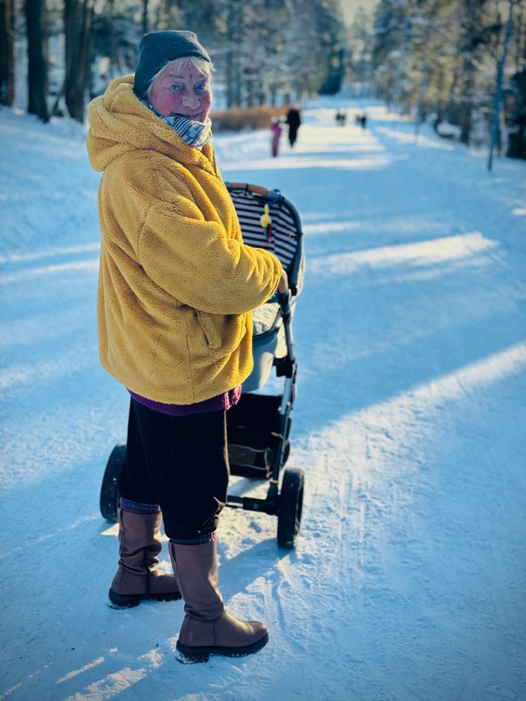 Pääsin taas pitkästä aikaa työntämään vaunuja lumessa. Tyttäreni on syntynyt tammikuun kymmenes, joten todella kauan aikaa sitten olen työntänyt vaunuja talvessa.