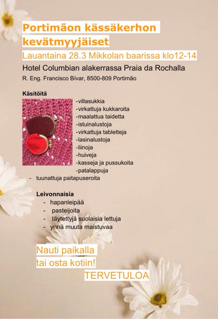 Suomalaistenkin kesken on kyllä paljon yhteistyötä. Ensi viikon lauantaina on kässäkerhon kevätmyyjäiset, ja sehän tietää minulle ruisleipien leivontaa ja villasukkien myyntiä.